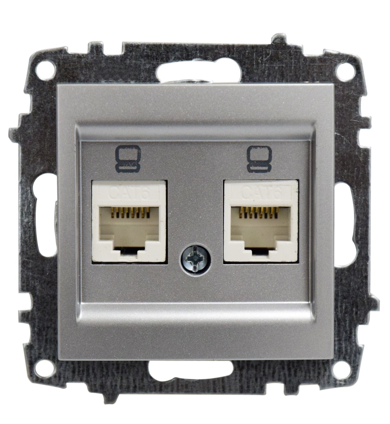 Розетка компьютерная RJ-45+RJ-45 В Рамку Двойная Серый Металлик IP20 Zena Vega EL-BI